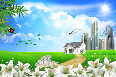 | PSD исходник - Дом на берегу. |